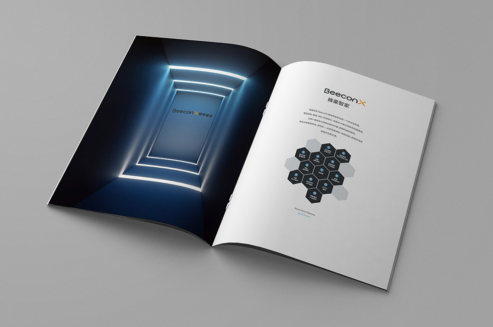 項(xiàng)目背景:蜂巢智家(BeeconX)智能家居系統(tǒng)是一個綜合性系統(tǒng),覆蓋照明、暖通、安防、影音娛樂、全屋Wi-Fi等日常各種功能需求,為客戶提供多業(yè)務(wù)融合解決方案,精簡的組網(wǎng)架構(gòu),家庭無需重復(fù)布線,多網(wǎng)合一,實(shí)現(xiàn)智能照明、智能控制、智能家電等設(shè)備的互聯(lián)互通。艾的爾承接其畫冊設(shè)計(jì)制作,成立品牌設(shè)計(jì)小組,與企業(yè)進(jìn)行深入溝通,明確企業(yè)對于畫冊設(shè)計(jì)的需求,封面整體色采用黑色,寓意高端、科技、智能。