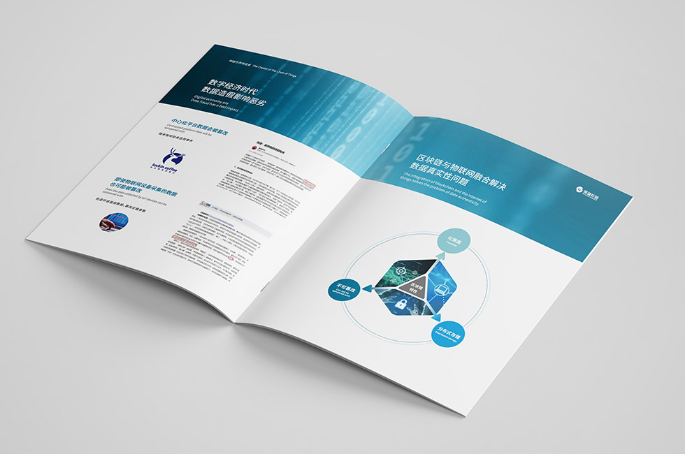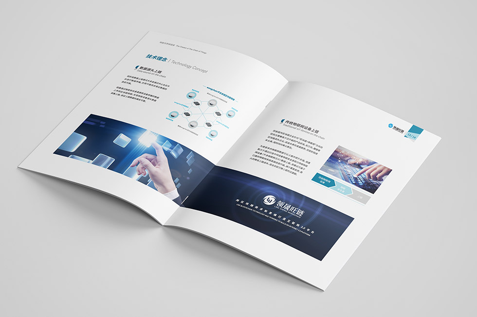 項(xiàng)目背景:領(lǐng)晟旺鏈?zhǔn)欠仆萍嫉娜Y子公司,也是國(guó)內(nèi)較早進(jìn)行區(qū)塊鏈技術(shù)研發(fā)和普及的企業(yè)。領(lǐng)晟旺鏈為各領(lǐng)域的區(qū)塊鏈應(yīng)用提供了穩(wěn)定的底層基礎(chǔ)設(shè)施、通用的業(yè)務(wù)平臺(tái)組件、上鏈中間件及硬件產(chǎn)品,并能夠針對(duì)特定的業(yè)務(wù)需求,將區(qū)塊鏈與傳統(tǒng)IT技術(shù)、物聯(lián)網(wǎng)、大數(shù)據(jù)、云計(jì)算、人工智能等進(jìn)行融合,提供合理的混搭式系統(tǒng)架構(gòu)。截至目前,公司已經(jīng)在物聯(lián)網(wǎng)、政務(wù)、能源、版權(quán)、食品、交通、醫(yī)養(yǎng)、公益、供應(yīng)鏈、大數(shù)據(jù)、旅游、金融等多個(gè)領(lǐng)域建立了行業(yè)區(qū)塊鏈系統(tǒng),并輔以提供行業(yè)解決方案。艾的爾承接其畫(huà)冊(cè)設(shè)計(jì)制作,成立品牌設(shè)計(jì)小組,與企業(yè)進(jìn)行深入溝通,明確企業(yè)對(duì)于畫(huà)冊(cè)設(shè)計(jì)的需求,畫(huà)冊(cè)設(shè)計(jì)上,顏色采用藍(lán)白兩色為主,利用分割線按黃金比例分割而成,藍(lán)色凸顯行業(yè)屬性信息傳輸、軟件和信息技術(shù)服務(wù)業(yè)。