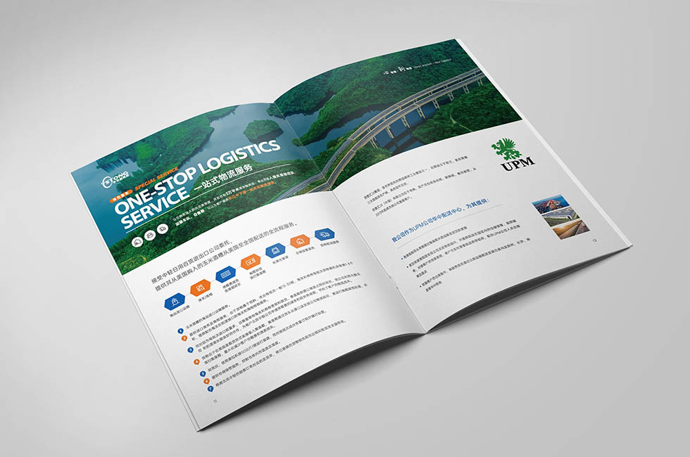 項(xiàng)目背景:武漢宇圣通物流有限公司依托武漢得天獨(dú)厚的陽邏深水港及九省通衢的區(qū)域優(yōu)勢,于2010年6月在武漢陽邏港旁新建龍發(fā)物流園,2011年建成并開始經(jīng)營,經(jīng)過近10年的發(fā)展,形成海、陸、空全方位物流體系。業(yè)務(wù)范圍覆蓋國際段集裝箱運(yùn)輸代理;國內(nèi)段集裝箱、散貨和大件運(yùn)輸;倉儲裝卸;報關(guān)報檢理貨。艾的爾承接其畫冊設(shè)計制作,成立品牌設(shè)計小組,與企業(yè)進(jìn)行深入溝通,明確企業(yè)對于畫冊設(shè)計的需求,封面采用白色為主,背景圖采用方塊圖拼接,凸顯行業(yè)屬性交通運(yùn)輸、倉儲和郵政業(yè)。