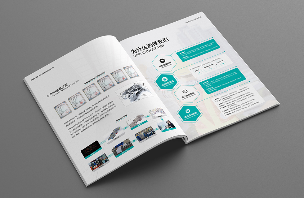 項(xiàng)目背景:華震集團(tuán)是一家以經(jīng)營建筑材料為主,集建筑總包、勞務(wù)大清包、鋼材商砼貿(mào)易、新材料研發(fā)制造、鋼材大小料加工、倉儲(chǔ)和物流為一體的中大型企業(yè)。集團(tuán)建有黨組織、工會(huì)、公益志愿組織和完善的企業(yè)文化建設(shè)體系。艾的爾設(shè)計(jì)接受其委托,承接畫冊設(shè)計(jì)項(xiàng)目。在畫冊設(shè)計(jì)、創(chuàng)意的過程中,設(shè)計(jì)師通過對行業(yè)屬性進(jìn)行深入地了解,在畫冊設(shè)計(jì)、創(chuàng)意的過程中,重點(diǎn)在表現(xiàn)企業(yè)主要是從事建筑總包,建筑材料供應(yīng)等服務(wù),因此在設(shè)計(jì)中以藝術(shù)的手法表現(xiàn)企業(yè)的行業(yè)屬性。在畫冊色封面設(shè)計(jì)中,設(shè)計(jì)師考慮到華震集團(tuán)的企業(yè)定位是智能建造服務(wù)商,生產(chǎn)理念上突出智能化、標(biāo)準(zhǔn)化、環(huán)?;?,因此色彩選擇藍(lán)綠色系,給人環(huán)保和智慧的觀感,給人一種平和恬靜的感官效果,封面中建筑樓體直接展現(xiàn)華震的業(yè)務(wù)范圍,建筑類(地下室、辦公體系建筑、住宅體系建筑)建造服務(wù),作為企業(yè)和項(xiàng)目畫冊,能夠開門見山傳達(dá)畫冊的類別和價(jià)值。從封面中都彰顯出企業(yè)的實(shí)力強(qiáng)大,沉穩(wěn)細(xì)致。在內(nèi)頁的設(shè)計(jì)中,按黃金分割比例設(shè)計(jì),標(biāo)題與文字的板塊相互呼應(yīng)文圖分布疏密有致,整個(gè)版面簡潔優(yōu)雅。大膽留白,恰到好處的留白使畫冊設(shè)計(jì)版面注入了生機(jī),版面設(shè)計(jì)中有部分透明化的背景圖,是整個(gè)畫面不死板呆滯,整體給人大氣、智慧的印象。整個(gè)畫冊傳達(dá)出了沉穩(wěn)、專業(yè)的視覺形象,對塑造企業(yè)專業(yè)、實(shí)力的形象有極大的作用。