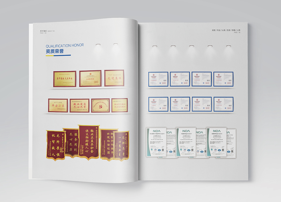 項(xiàng)目背景:武漢展鵬物業(yè)是一家運(yùn)用現(xiàn)代管理科學(xué)和先進(jìn)技術(shù)對(duì)物業(yè)實(shí)施統(tǒng)一的專(zhuān)業(yè)化管理的公司,艾的爾設(shè)計(jì)接受其委托,承接畫(huà)冊(cè)設(shè)計(jì)項(xiàng)目。在畫(huà)冊(cè)設(shè)計(jì)、創(chuàng)意的過(guò)程中,設(shè)計(jì)師通過(guò)對(duì)行業(yè)屬性進(jìn)行深入地了解,根據(jù)企業(yè)屬性,進(jìn)行了畫(huà)冊(cè)設(shè)計(jì)、創(chuàng)意。在畫(huà)冊(cè)設(shè)計(jì)中,設(shè)計(jì)師突出專(zhuān)業(yè)、科學(xué)與高效的同時(shí)體現(xiàn)服務(wù)業(yè)的行業(yè)屬性,因此大面積的藍(lán)與點(diǎn)綴的黃成為畫(huà)冊(cè)主體顏色,封面以武漢的黃鶴樓為主展現(xiàn)展鵬物業(yè)在武漢服務(wù)與廣大業(yè)主與客戶(hù)的服務(wù)業(yè)屬性。整體強(qiáng)化每一板塊的名稱(chēng),突出板塊的重點(diǎn),區(qū)域區(qū)分簡(jiǎn)潔明了,能讀者快速了解公司