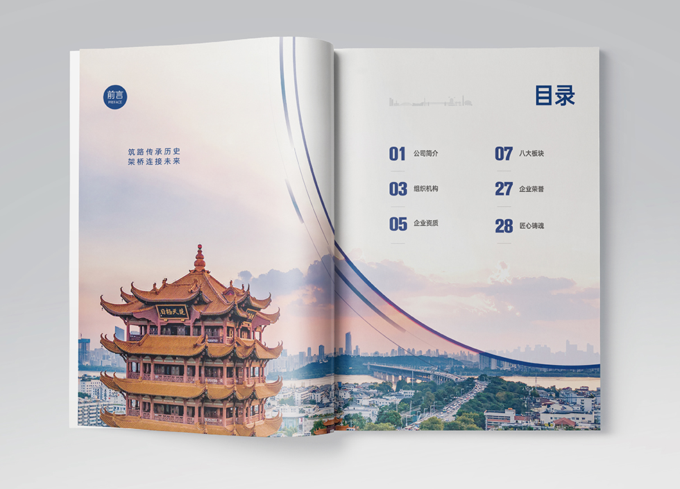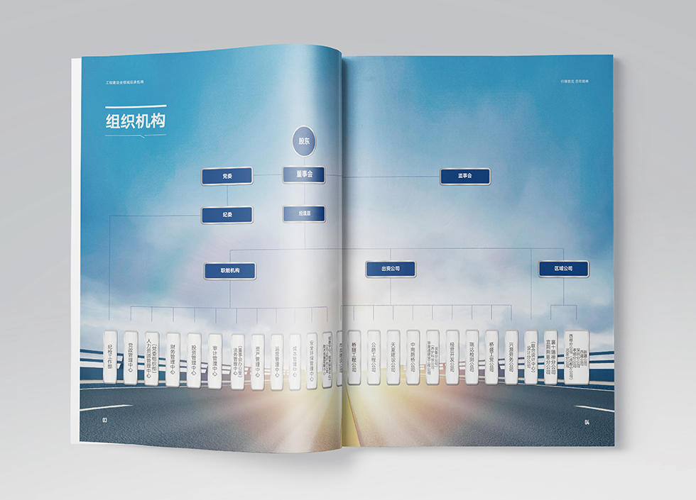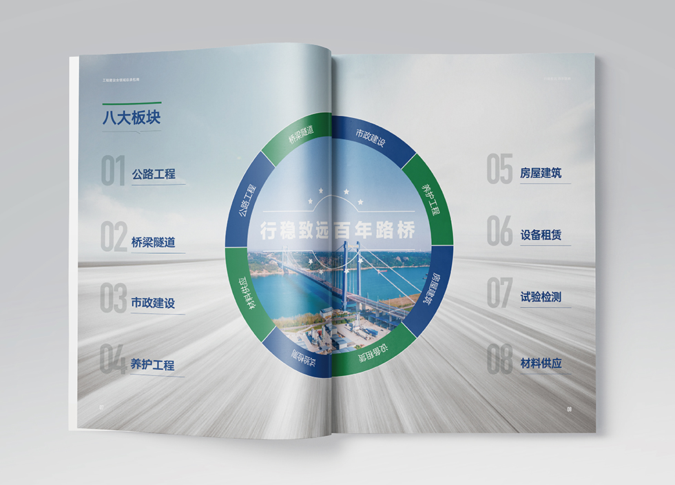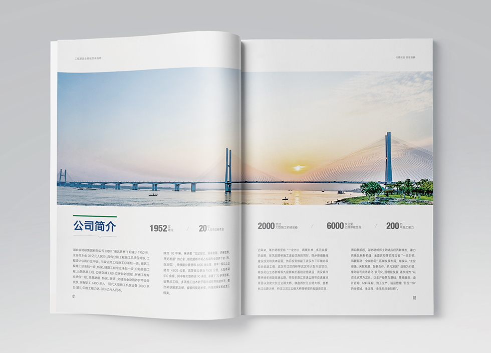 項(xiàng)目背景:湖北路橋是一家建筑施工總承包一級控股公有公路工程施工總承包特級、市政公用工程施工總承包一級、橋梁、隧道工程專業(yè)承包一級資質(zhì)的公司,愿景是成為最具國際競爭力的綜合型建筑企業(yè)集團(tuán),艾的爾設(shè)計(jì)接受其委托,承接畫冊設(shè)計(jì)項(xiàng)目。在畫冊設(shè)計(jì)、創(chuàng)意的過程中,設(shè)計(jì)師通過對行業(yè)屬性進(jìn)行深入地了解,根據(jù)企業(yè)屬性,進(jìn)行了畫冊設(shè)計(jì)、創(chuàng)意?;诖?,封面采用公司具有意義的代表性工程的插畫形式,展現(xiàn)結(jié)構(gòu)與專業(yè)性、行業(yè)屬性。整體采用品牌標(biāo)準(zhǔn)色藍(lán)色,穩(wěn)重不失活力,內(nèi)頁使用建筑工程概念圖占據(jù)大幅畫面,給讀者視覺上的享受與直觀的業(yè)績展現(xiàn)