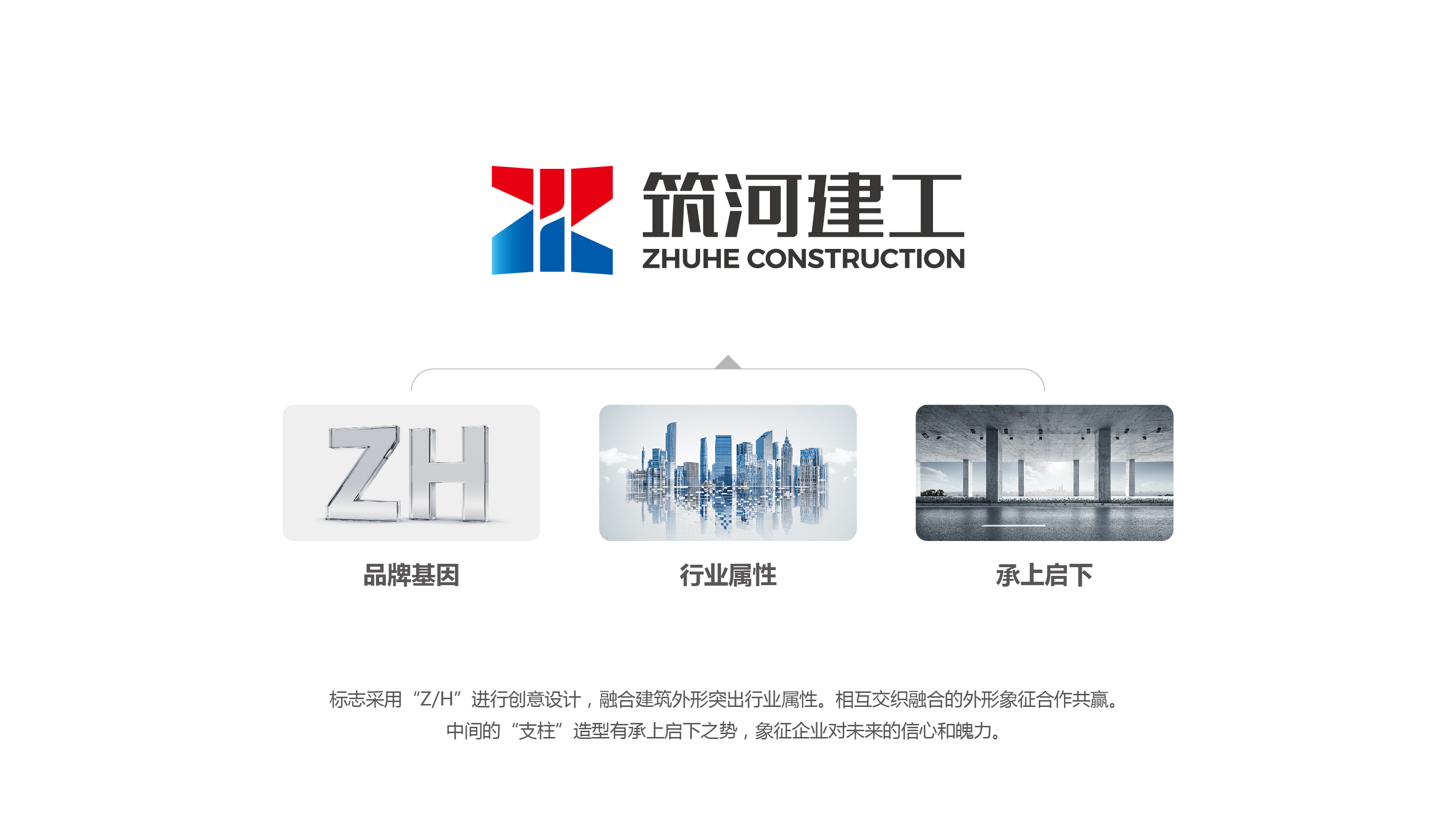 項(xiàng)目背景:筑河建工作為黃岡建筑產(chǎn)業(yè)轉(zhuǎn)型發(fā)展的試驗(yàn)田,是一家具有發(fā)展前景、充滿年輕活力的企業(yè),也是黃岡、團(tuán)風(fēng)合力打造的一張建筑業(yè)“新名片”。筑河建工具有起點(diǎn)高、基礎(chǔ)實(shí)、潛力大的特點(diǎn)及優(yōu)勢(shì)。在行業(yè)發(fā)展的洪流中,公司不斷尋求新的機(jī)遇、持續(xù)提升綜合實(shí)力,積極推動(dòng)綠色建造、智慧建造、精益建造,建設(shè)高品質(zhì)、示范型精品工程,服務(wù)經(jīng)濟(jì)社會(huì)發(fā)展,向著打造一流企業(yè)的目標(biāo)邁進(jìn)。艾的爾團(tuán)隊(duì)承接該項(xiàng)目,由品牌總監(jiān)牽頭,主動(dòng)與筑河建工對(duì)接,成立品牌VI設(shè)計(jì)小組,經(jīng)過多次對(duì)接溝通,設(shè)計(jì)小組反復(fù)修改,最后完成從概念到形象生動(dòng)的塑造呈現(xiàn)。筑河建工標(biāo)志logo采用“Z/H”進(jìn)行創(chuàng)意設(shè)計(jì),融合建筑外形突出行業(yè)屬性。相互交織融合的外形象征合作共贏。中間的“支柱”造型有承上啟下之勢(shì),象征企業(yè)對(duì)未來的信心和魄力。