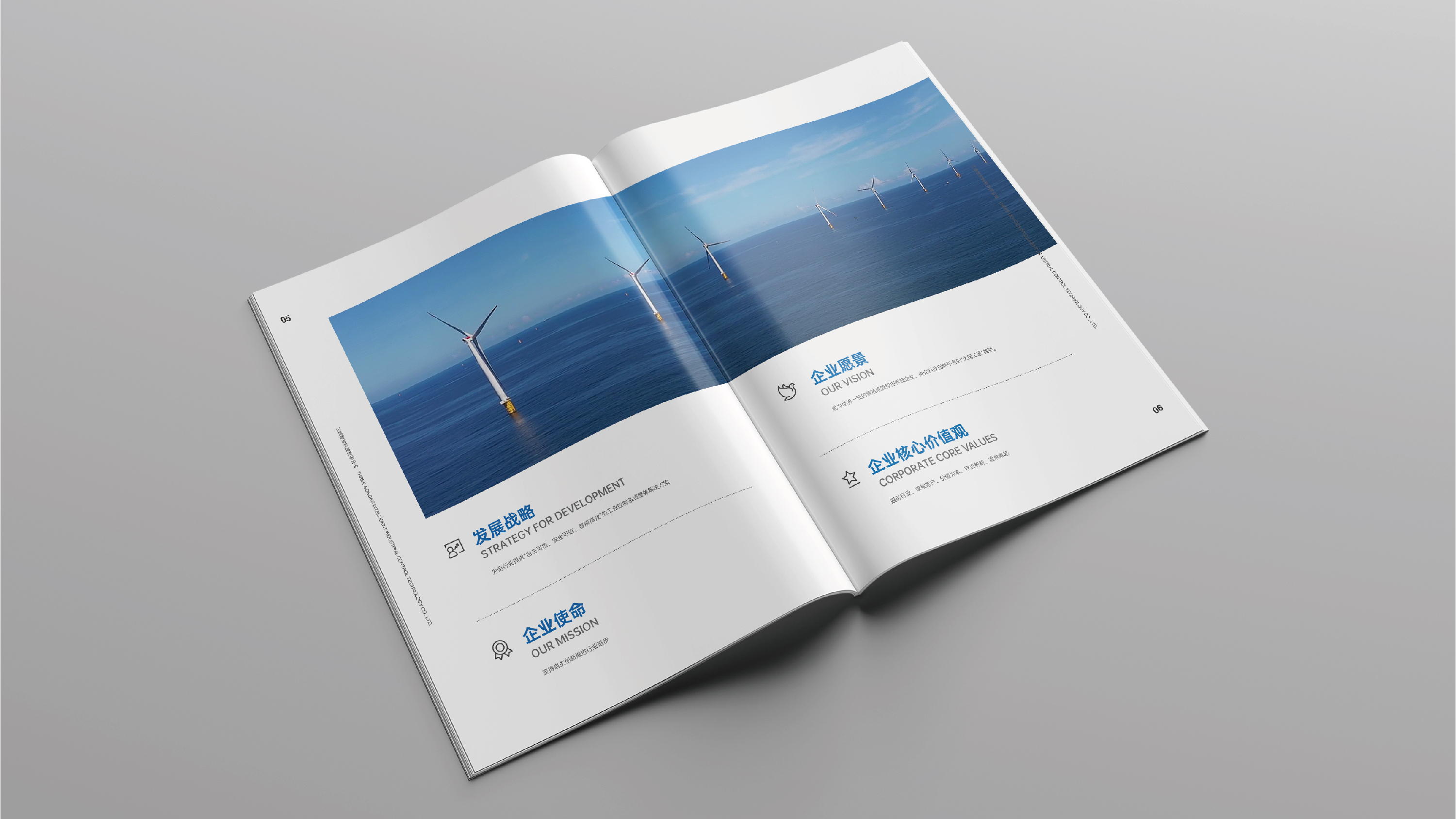 項(xiàng)目背景:三峽智控科技有限公司是是由中國長江三峽集團(tuán)有限公司面向清潔能源工控系統(tǒng)領(lǐng)域打造的科技攻關(guān)與產(chǎn)業(yè)發(fā)展主體。公司以工控系統(tǒng)核心技術(shù)研發(fā)為主線,從基礎(chǔ)攻關(guān)、應(yīng)用研究,到產(chǎn)業(yè)化運(yùn)營的全鏈條發(fā)力,鞏固三峽集團(tuán)的行業(yè)創(chuàng)新主體和產(chǎn)業(yè)鏈“鏈長”地位,引領(lǐng)推動清潔能源工控全產(chǎn)業(yè)鏈一體化、數(shù)字化、智能化和可持續(xù)化高質(zhì)量發(fā)展。艾的爾設(shè)計(jì)接受其委托,承接畫冊設(shè)計(jì)項(xiàng)目。在畫冊設(shè)計(jì)、創(chuàng)意的過程中,設(shè)計(jì)師通過對行業(yè)屬性進(jìn)行深入地了解,在畫冊封面設(shè)計(jì)中放入風(fēng)力發(fā)電圖片,表現(xiàn)出了企業(yè)的行業(yè)屬性,畫冊整體采用藍(lán)色做為主色調(diào),以便于與三峽智控風(fēng)能的品牌形象保持統(tǒng)一。畫冊的畫面格局非常的輕松靈活,但又不失大公司的嚴(yán)謹(jǐn)之風(fēng)。潔白的風(fēng)能電機(jī)映襯在藍(lán)色的背景中,體現(xiàn)了卓越的科技時尚感。整本畫冊傳達(dá)出企業(yè)沉穩(wěn)、專業(yè)的視覺形象,讓讀者能夠感受到企業(yè)實(shí)力。