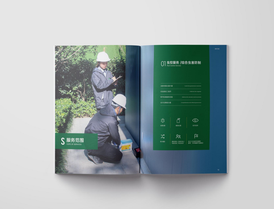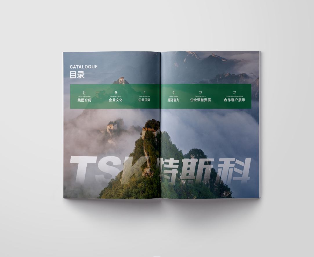 項(xiàng)目背景:TSK特斯科集團(tuán)是一家集團(tuán)化、整合化、多品牌經(jīng)營(yíng)的PCO(有害生物防制)企業(yè)。致力于在蟲(chóng)控服務(wù)、應(yīng)急管理、環(huán)境與空氣治理、消毒殺菌等方面為客戶提供貼心可靠的服務(wù)與安心高效的保障。服務(wù)內(nèi)容涵蓋從技術(shù)檢查和日常預(yù)防性檢查,到蟲(chóng)害預(yù)防、控制凈滅工作、清除害蟲(chóng)污染物、專(zhuān)業(yè)消毒等全過(guò)程。此外還針對(duì)不同行業(yè)的客戶需求,協(xié)助管理供應(yīng)鏈,提供包括人員培訓(xùn)、蟲(chóng)害風(fēng)險(xiǎn)咨詢、鑒定報(bào)告、通過(guò)內(nèi)外部審計(jì)等高附加值服務(wù)。艾的爾設(shè)計(jì)通過(guò)與企業(yè)進(jìn)行深入溝通,明確企業(yè)對(duì)于畫(huà)冊(cè)設(shè)計(jì)的需求,畫(huà)冊(cè)封面內(nèi)容簡(jiǎn)潔并突出重點(diǎn),綠色的采用,與品牌vi調(diào)性一致,符合行業(yè)屬性,在內(nèi)頁(yè)的設(shè)計(jì)中,按黃金分割比例設(shè)計(jì),標(biāo)題與文字的板塊相互呼應(yīng),圖文分布疏密有致,整個(gè)版面簡(jiǎn)潔優(yōu)雅。畫(huà)冊(cè)內(nèi)頁(yè)的顏色選用上,和封面相互呼應(yīng),以綠白等清新雅致的顏色為主。整個(gè)畫(huà)冊(cè),設(shè)計(jì)精簡(jiǎn)、嚴(yán)格,充分展現(xiàn)出了企業(yè)的訴求和形象。